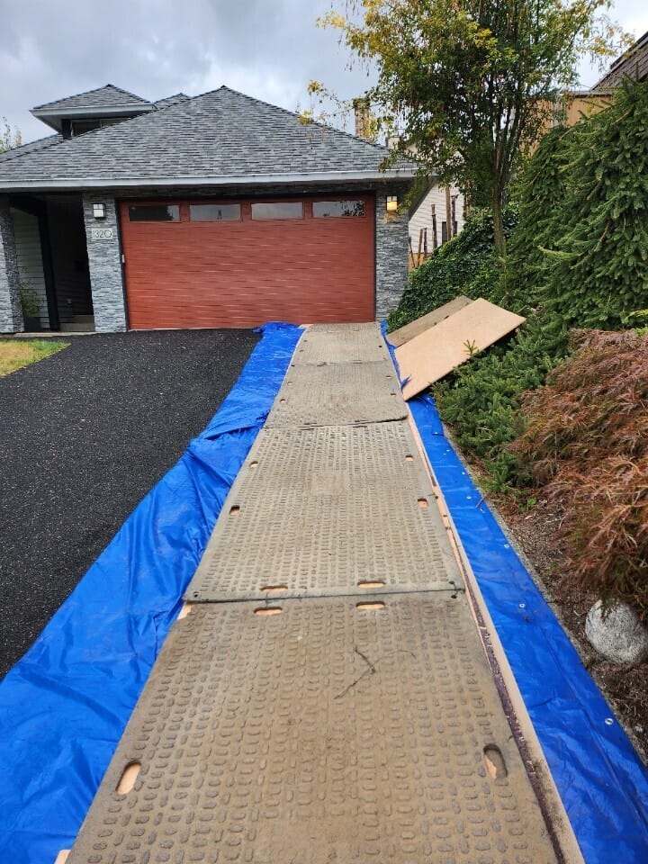 · Yard and home protection – weather you have a new driveway or an existing wall in the way of access, we can bridge or plank over it, using tarps as base protection, timbers & ply wood as well as locking composite planks so our machines do not damage your property. As well, we will board off the side of your home where needed to ensure debris does not cause unnecessary damage.