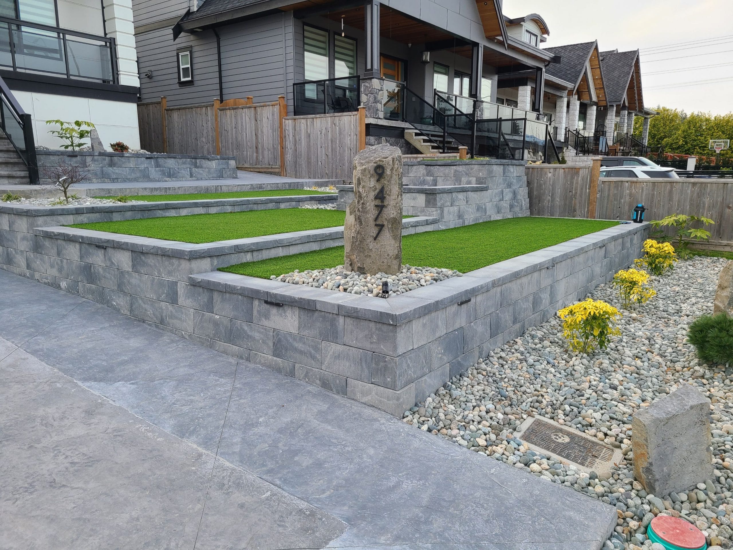 SOME OF OUR WORK Retaining Walls & Garden Borders Paving Stones Concrete Driveways, Walkways & Patios Rock Gardens & Planting Artificial Turf Decks & Fencing LawnsRetaining Walls & Garden Borders Paving Stones Concrete Driveways, Walkways & Patios Rock Gardens & Planting Artificial Turf Decks & Fencing Lawns